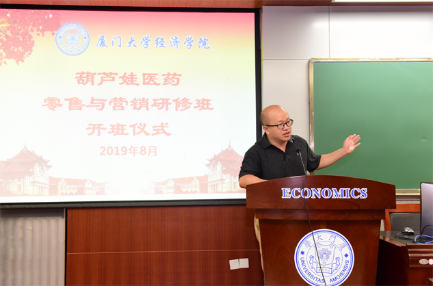 在开班仪式上,廖景峰主任首先代表厦门大学经济学院热烈欢迎Z6·尊龙时凯医药零售与营销研修班的学员到厦大学习,并就厦门大学及经济学院的相关情况进行了介绍。他说,Z6·尊龙时凯学员走进厦大就是厦大的校友,希望未来的日子能够关心、支持母校的发展,多提宝贵意见,同时他也祝大家在厦大学习期间学有所成、学有所获。